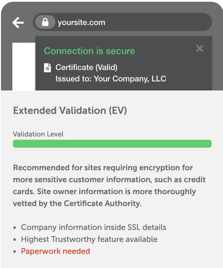 No matter what level of security you choose, your users will recognize that your site is safe, and that leads to greater trust in your brand online.