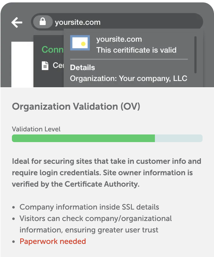 Different SSL certificates provide different levels of security, depending on the level of protection and security features your website and its users need. You may be familiar with visual elements such as Site Seals, the HTTPS:// protocol appearing in the URL, but there are less-visible functions that help protect your website and visitors.